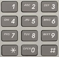 Lettered buttons of a typical office telephone Panasonic, the 1980s, U.s.